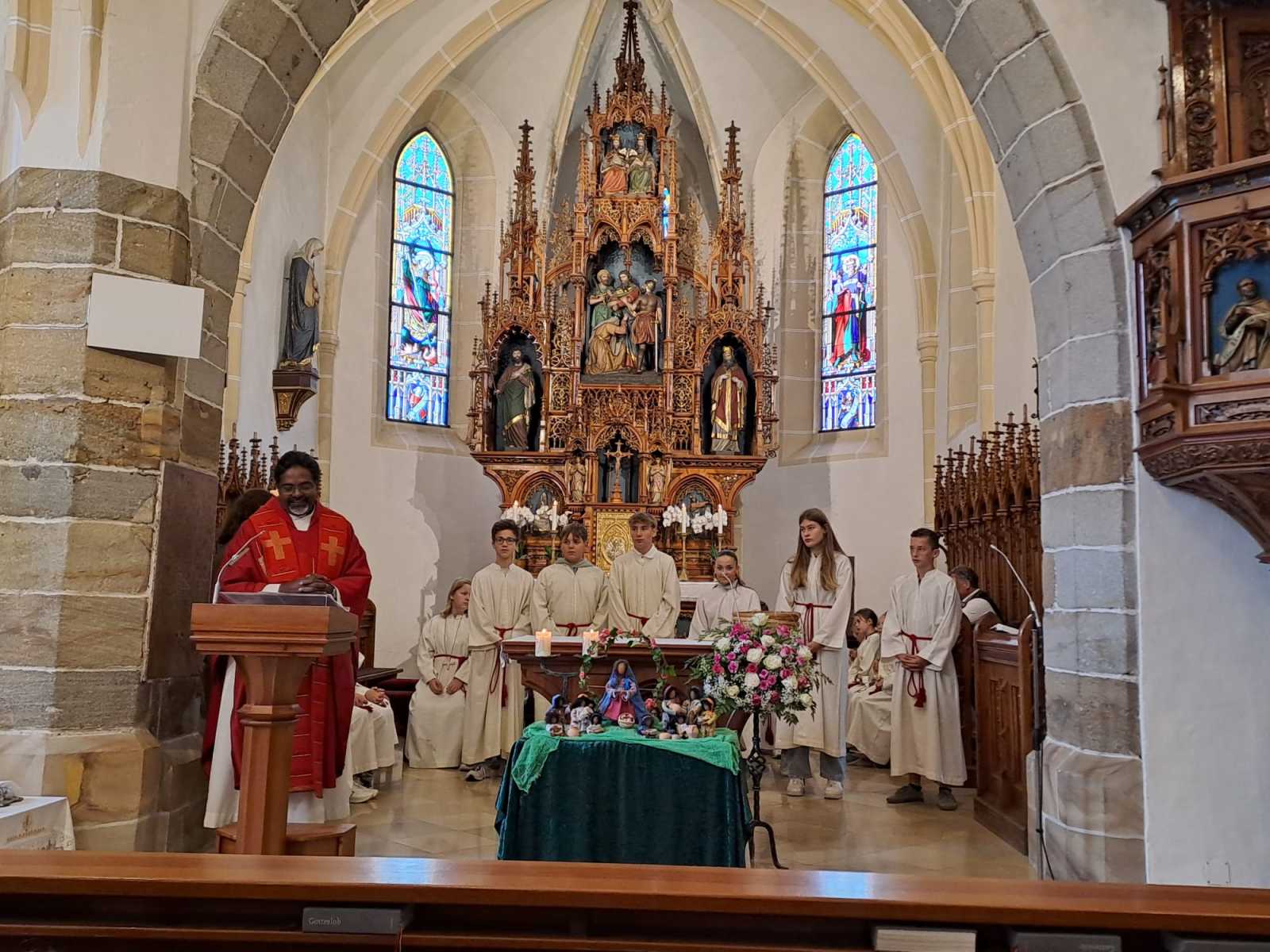 In der Heiligen Messe am 14. September wurden die neuen Ministrantinnen und Ministranten feierlich in die Gemeinschaft der Ministranten aufgenommen. Mit großer Freude und Applaus wurden sie in ihren wichtigen Dienst am Altar eingeführt und willkommen geheißen.