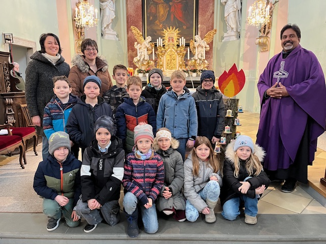 Am Sonntag, dem 22. Februar, wurden die 13 Erstkommunionkinder im Rahmen der Hl. Messe vorgestellt. Das Motto in diesem Jahr lautet „Jesus ist mein Licht“. Für diese Messe bastelte Katharina Zeilinger mit den Kindern Kerzen, um das Symbol des Lichts zu verdeutlichen. In die Vorbereitung der Kinder auf das Fest der Erstkommunion sind unsere Religionslehrerin Barbara Berndl und Cordula Ebner eingebunden. An alle ein herzliches Dankeschön!