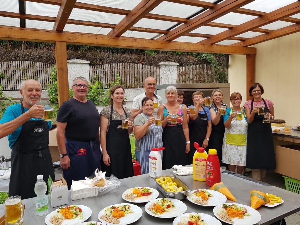 Das Küchenteam verwöhnte die Besucher im Pfarrgarten und im Pfarrsaal mit leckeren Speisen wie Surbraten, Schnitzel, Grillwurst, Frischkäsetaschen, usw. Nach dem Essen genossen viele den Nachmittag mit Kaffee und köstlichen Mehlspeisen oder auch dem einen oder anderen kühlen Getränk oder erlesenem Wein.