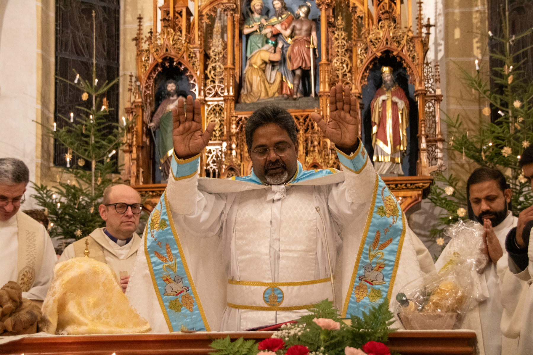 Die Predigt hielt Rupert Grill, der Pfarrer Shiju seit dessen Zeit in Amstetten kennt und seinen Weg begleitet hat. Unter den Konzelebranten befanden sich auch die Priesterkollegen Peter Bösendorfer und Herbert Reisinger sowie seine indischen Mitbrüder aus der Heimat-Diözese in Kerala.